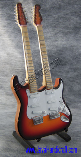 For Price list, please contact : info@javahandicraft.com Miniature Guitar Fender Double Neck Sunburst CODE : JVUMG39